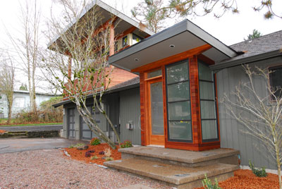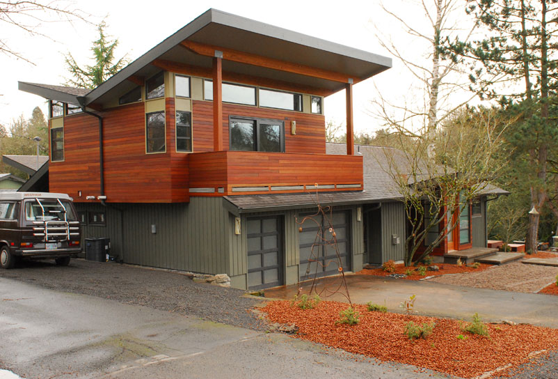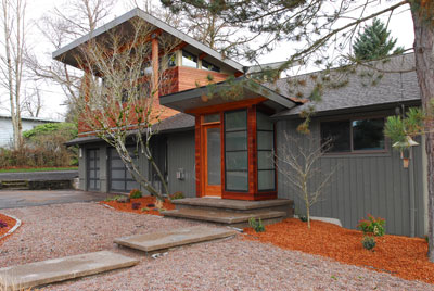 To an existing 1-story ranch house, two significant contemporary additions were added to the top and the rear of the house. The front entry was also completely redesigned to correspond with the upper addition roof lines and look. These additions revealed more interior spaces and lighting, horizontal roof and siding lines, resulting in vastly redefined updated house.