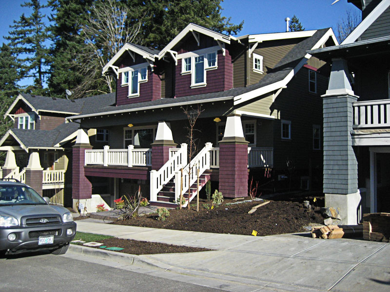 First built at Garden Grove Neighborhood, this is the largest of the bungalows. One of the favorite characteristic of this house is the formality of the main level floor plan. The entry is aligned with the hall going back to the den/family room through a pair of French glass doors.